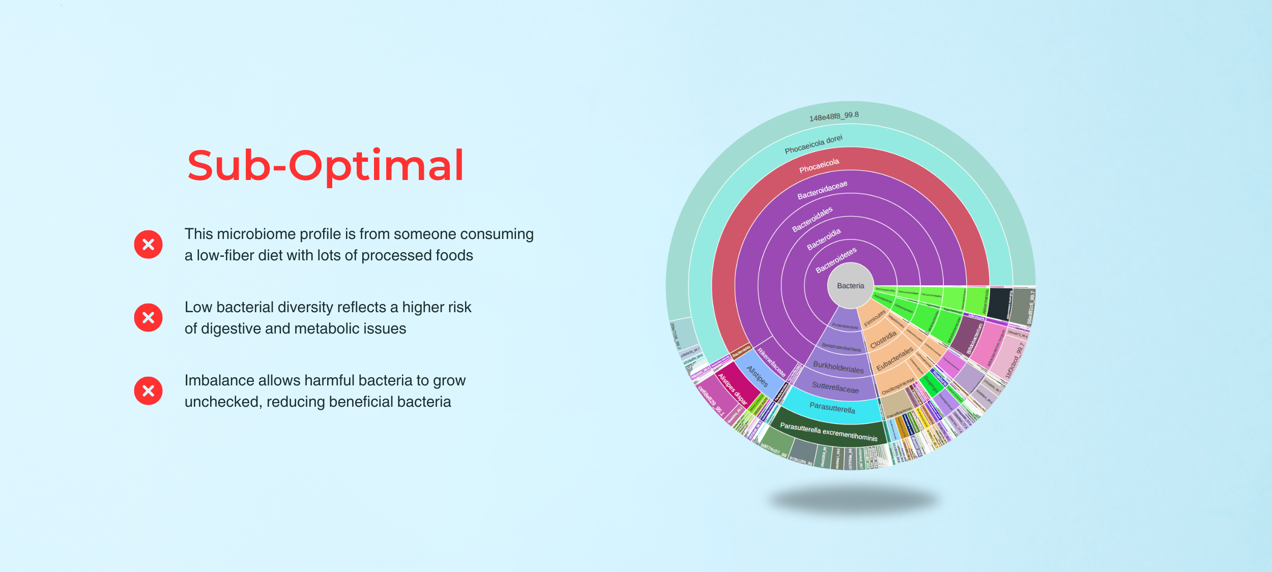 Our patented Titan-1™ technology analyzes the gut bacteria with unmatched precision, surpassing the capabilities of many current microbiome tests on the market. This innovative platform identifies bacterial imbalances and provides personalized insights to optimize health.