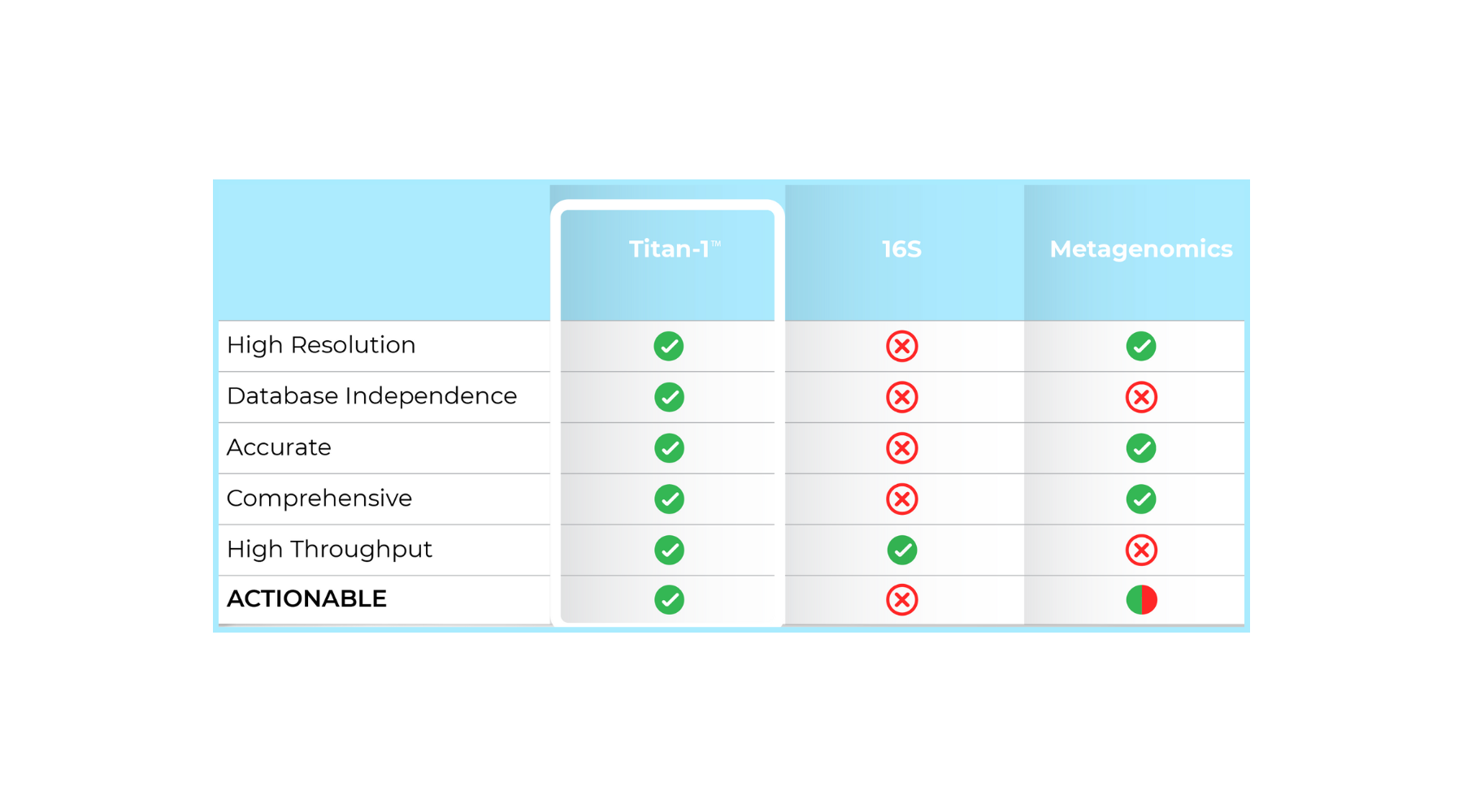 GutID tests use long-read sequencing which, unlike conventional 16S or shotgun metagenomics, generates high-resolution data to retrieve truly actionable information.